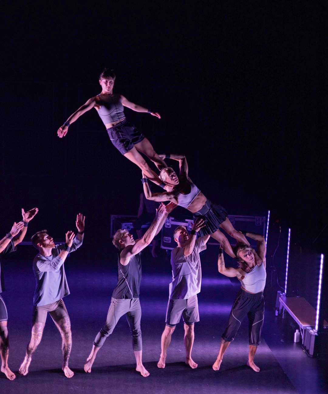 Eight elite acrobats investigate physical skill; how we obtain it, how we perfect it, and how it can transform our lives. Through highlighting the nuance of high-level acrobatics, audiences experience a heightened appreciation of the countless hours required to master the skills they are witnessing.